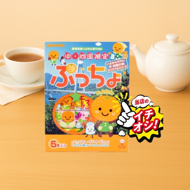口の中でコロコロ転がるぷちぷちぷるぷる食感の小粒グミ「ぷっちょグミ」の中・四国限定バージョンです。いよかんグミ&ヨーグルトグミ・瀬戸内レモングミ&ヨーグルトグミの2種類の味がお楽しみいただけます。4本すべてパッケージのイラストが違い、阿波踊りやお遍路さんなどに扮 したいよかんちゃん、れもんちゃんが載っており、おみやげにおすすめです。 やつの定番として愛され続けるぷっちょ グミは、どこか懐かしい味わいと楽しい食感が特徴です。山あり谷ありの四国地方の風景をイメージさせる、バラエティ豊かな味わいが楽しめます。中部・四国エリアへの旅行やご当地グルメ巡りのお土産としても最適です。 -------------------------------------------------------------------- 商品詳細 内容量 32g×4本 原材料 水飴(国内製造)・砂糖・果糖ぶどう糖液糖・ゼラチン・レモン果汁・濃縮果汁(りんご・いよかん)・澱粉/酸味料・ゲル化剤(ペクチン)・香料・光沢剤・着色料(カロチノイド)・乳化剤・(一部にりんご・ゼラチンを含む) 保存方法 直射日光、高温、多湿を避け涼しい所にて保存して下さい。 賞味期限 約2ヶ月 【栄養成分表示(1本当たり)】 ■エネルギー 103kcal ■たんぱく質 2.5g ■脂質 0g ■炭水化物 24.2g ■食塩相当量 0.01g ----------------------------------------------------------------------- 【送料無料の発送の注意事項】 ※発送から配達まで2~5日程かかります。 ※ポストへの投函をもって配達完了となります。 ※商品破損、紛失時の保証がついていません。 ※エアーキャップや緩衝材で保護はしていません。 ※マンション名や部屋番号の記載漏れは配達不可 ※不在等で商品の受け取りをせず返送された場合、食品は賞味期限があるため、返金、再発送はできません。(再注文をお願いしています。)