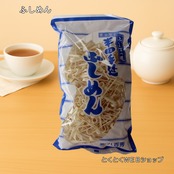 ふしめんとは、徳島県の特産品である半田素麺の製造過程で素麺を棒に吊るして干した後、直線部分を切り落とした際に残った、丸くなった部分の麺をカットしたものです。もっちりした歯ごたえで喉ごしも良く、そうめんの一番おいしい部分とも言われています。