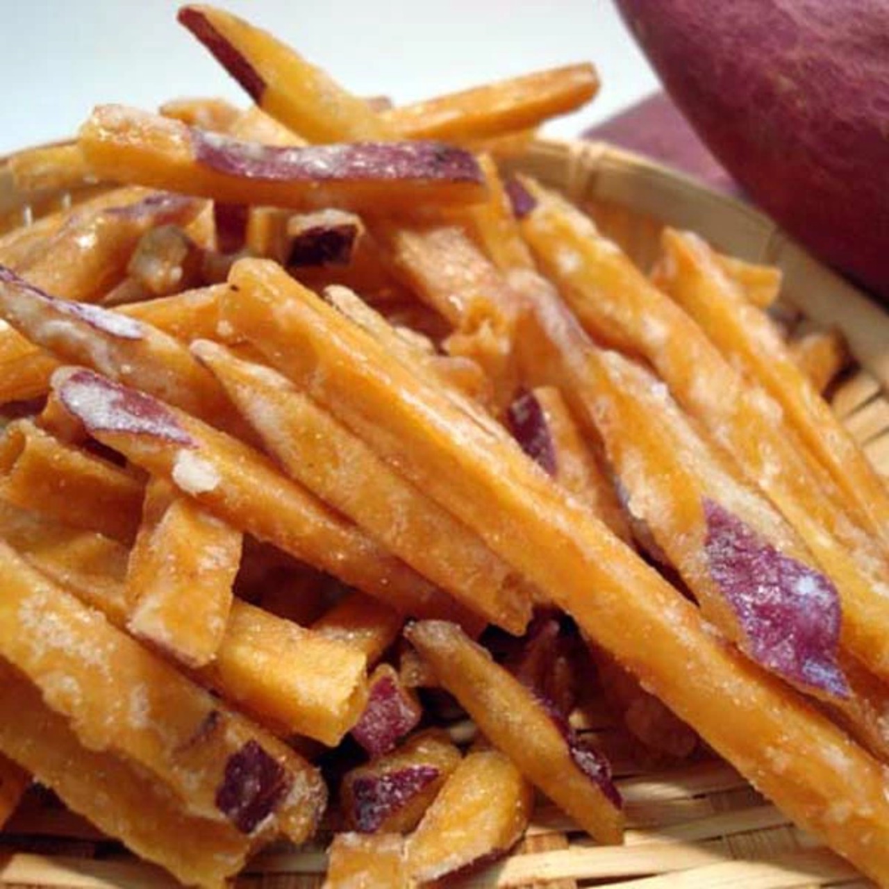 厳選された「鳴門金時」を、お芋のスペシャリスト達が何度も何度も納得いくまで食感・風味にこだわって作りあげた最高に贅沢な芋けんぴです。「鳴門のいも屋」独自のフライ製法行程を駆使して他には真似の出来ない「カリカリ感」に仕上げています。添加物や合成甘味料を一切使わず、しっかりとさつま芋の甘みが感じられ、一度食べたら手が止まらない美味しさです。ご自宅用のおやつにはもちろん、手土産にも喜ばれる逸品です。