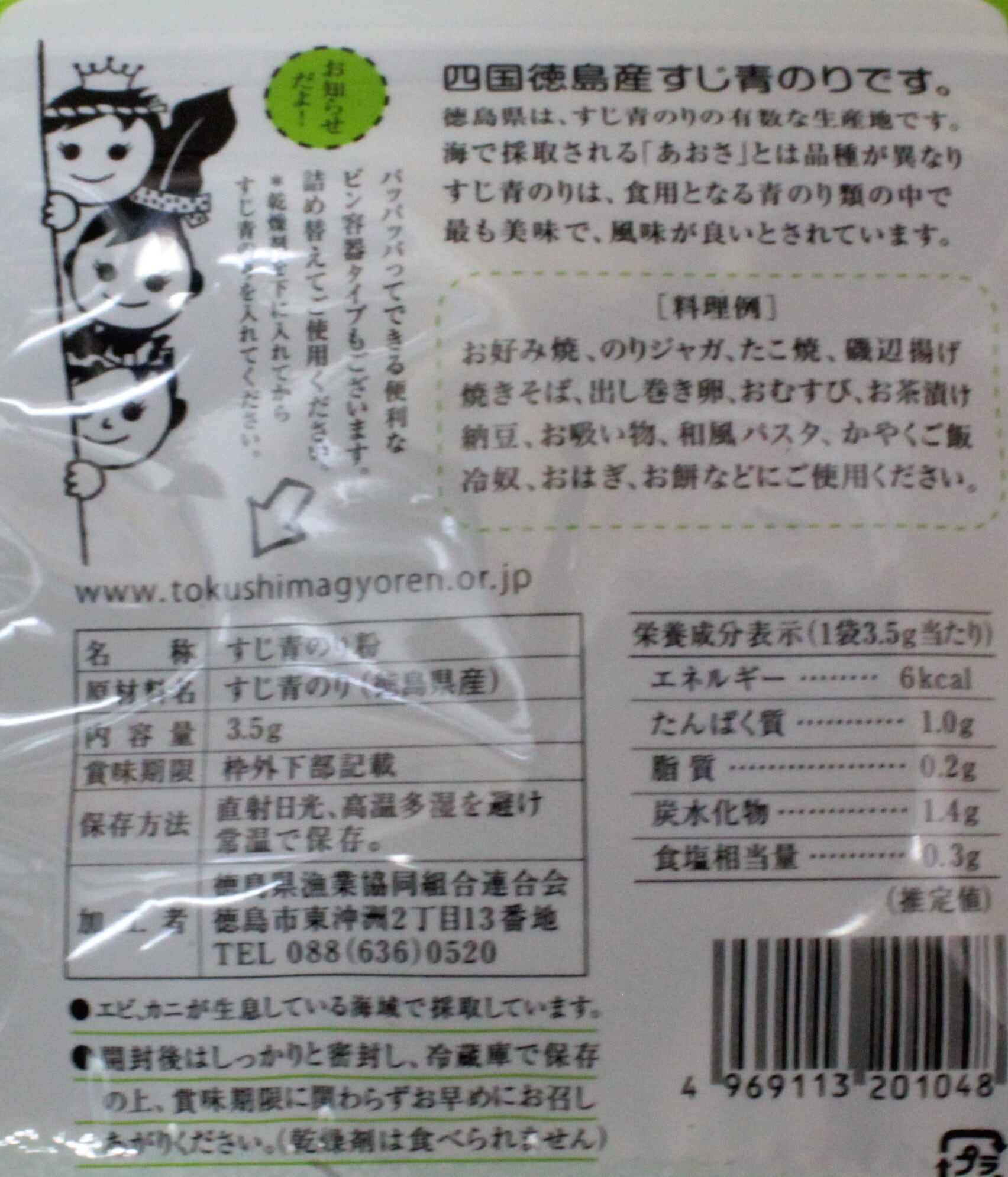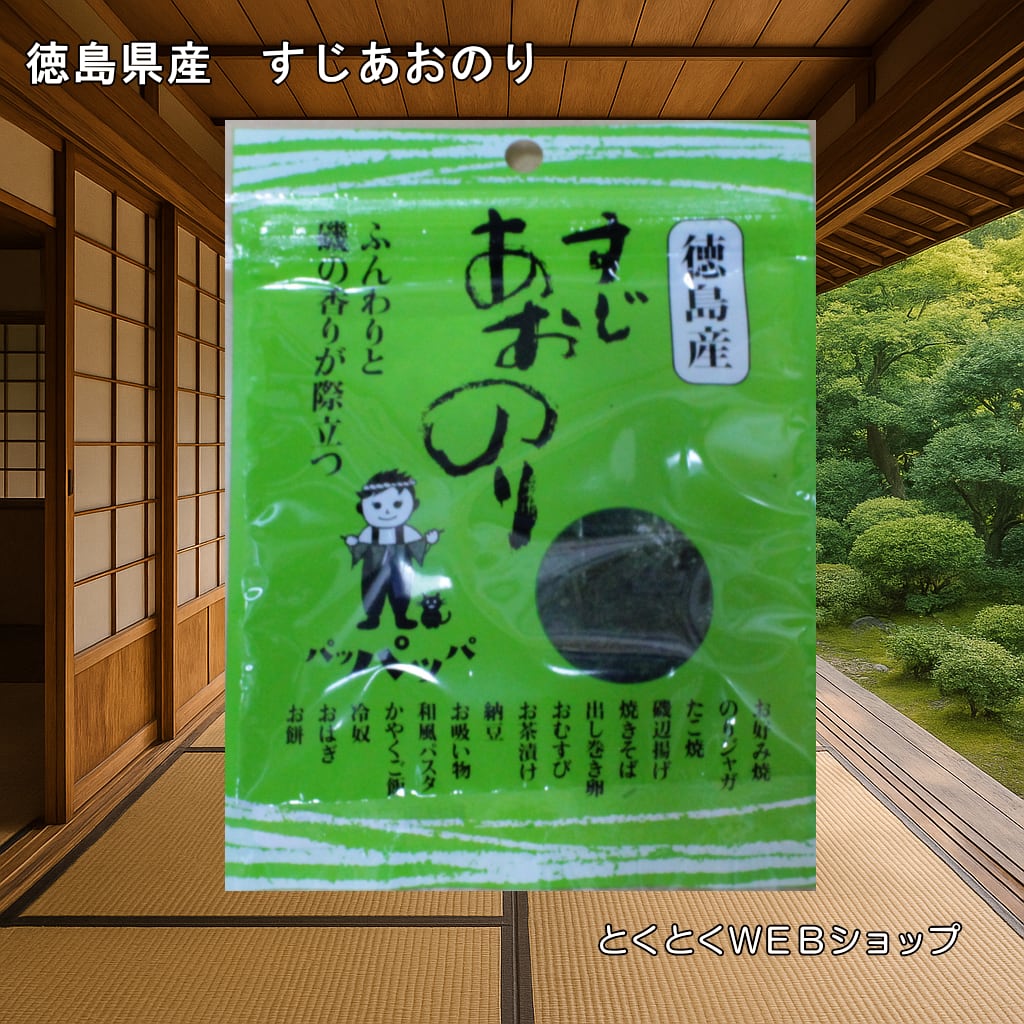 徳島県は、すじ青のりの有数な生産地です。海で採取される「あおさ」とは品種が異なりすじ青のりは、食用となる青のり類の中で最も美味で、風味がよいとされています。