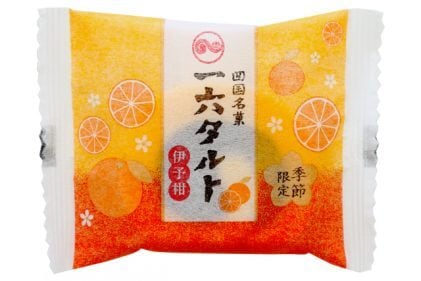 伊予柑の時期に合わせた季節限定のひと切れ一六タルトです。愛媛県産伊予柑を使用したみかん餡を、伊予柑をイメージしたオレンジ色の柔らかい生地で包みました。伊予柑果皮の食感と、爽やかな柑橘の風味をお楽しみいただけます。