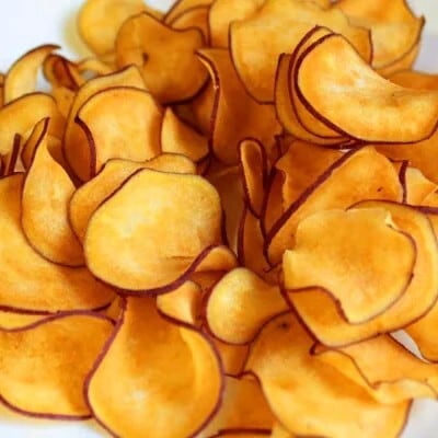 徳島県産の鳴門金時さつまいものチップスは、自家製無添加の素揚げのままで、鳴門金時の素材だけの味で食べるチップスはやめられない止まらない。