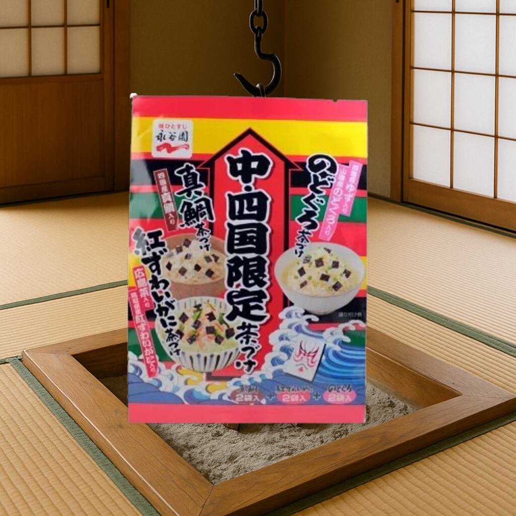 「味ひとすじの永谷園」がお届けする地域限定のお茶づけです。四国産真鯛を使った胡麻味の「真鯛茶づけ」、鳥取県産紅ずわいがにと広島菜を使った抹茶味の「紅ずわいがに茶づけ」、山陰産のどぐろと四国産ゆずを使った鰹だし味の「のどぐろ茶づけ」の3つの味がそれぞれ2袋ずつ入っています。忙しい朝やお夜食にと、いつでも手軽にさらっといただけます。あつあつのお湯を注いでお楽しみください。中・四国限定商品ですので、お土産にも大変人気があります。