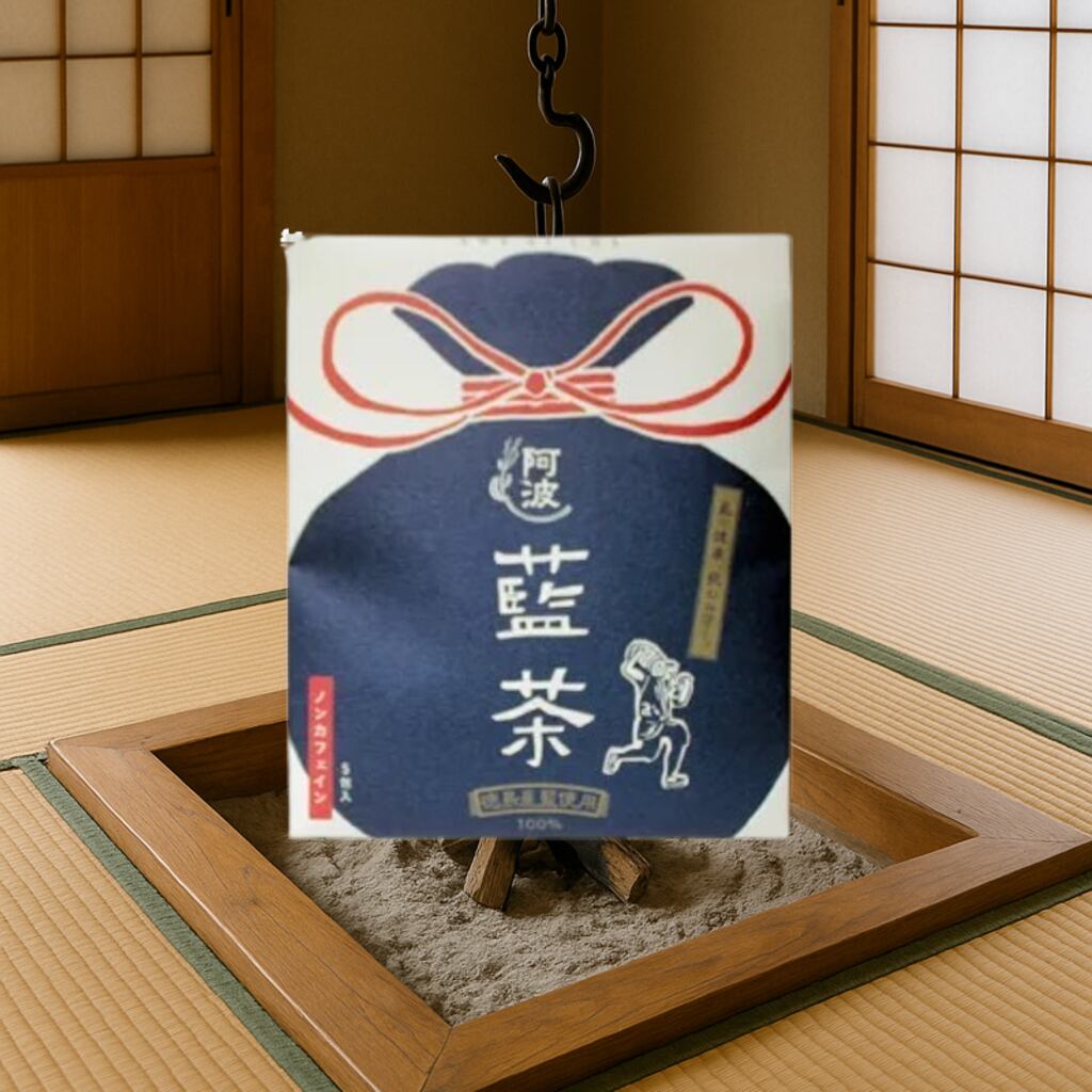 藍茶は、徳島県産の藍を100%使用したノンカフェインティーです。焙煎工程を加えることにより、藍特有のエグみや青臭さがなく、小さなお子様からご年配の方までおいしく飲んで頂けます。ご自宅用にはもちろん、プレゼントやお土産にもおすすめです。